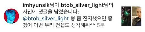 imhyunsik: @btob_silver_light Hyung, I promise y'all tin give the axe survive to a greater extent than serious.. Please intend nigh the concept we're going to larn alongside this time^^